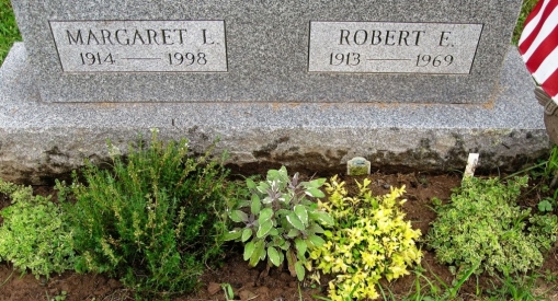 For years I have planted culinary herbs in my clients gardens when they have critter problems. Deer, rabbits, chipmunks, and woodchucks seem to avoid these intensely fragrant plants. And while it’s a bit unusual to plant them in cemeteries, I knew that my mother-in-law wouldn’t mind this choice in front of their gravestone as she had helped me type my first manuscript for The Complete Book of Edible Landscaping. She was a fan of edible landscaping!
